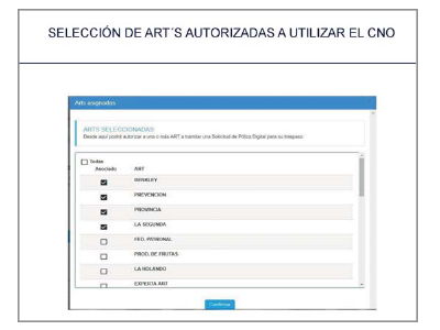 El servicio le permitirá al empleador seleccionar las ART que podrán utilizar el CNO, por favor seleccione la propuesta de este Broker.