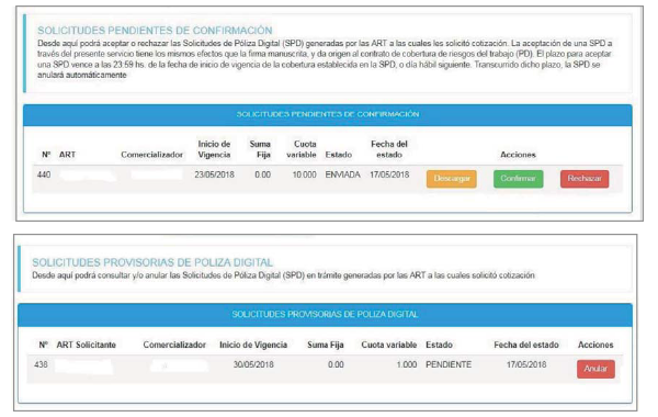Para ello deberá ingresar a “ARCA /e-Servicios SRT / Póliza Digital de Riesgos del Trabajo / Solicitud de Póliza Digital / Solicitudes pendientes de confirmación.